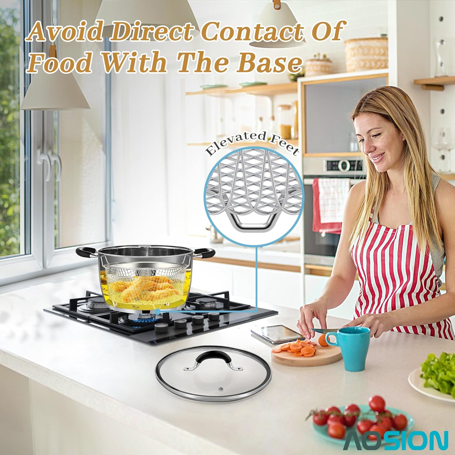AOSION 6 Quart Stainless Steel Stockpot with Deep Fryer Basket, Stainless Steel Pot with Lid