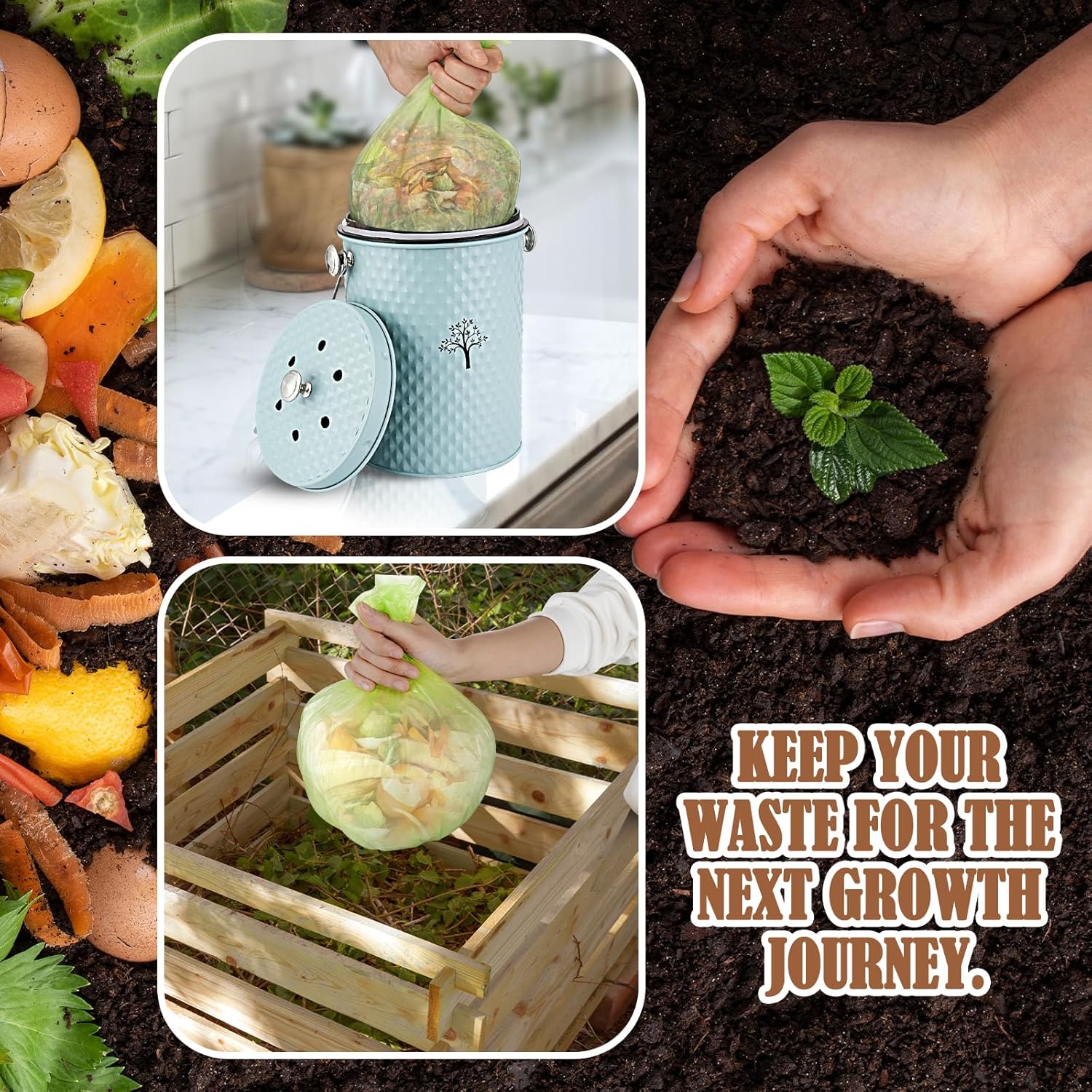 AOSION Countertop Compost Bin Kitchen,Odorless Indoor Compost Bin
