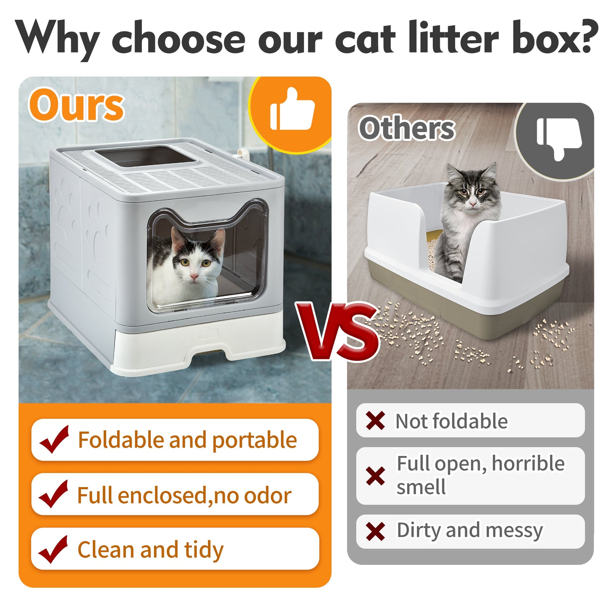 AOSION Foldable Cat Litter Box, Extra Large Litter Box