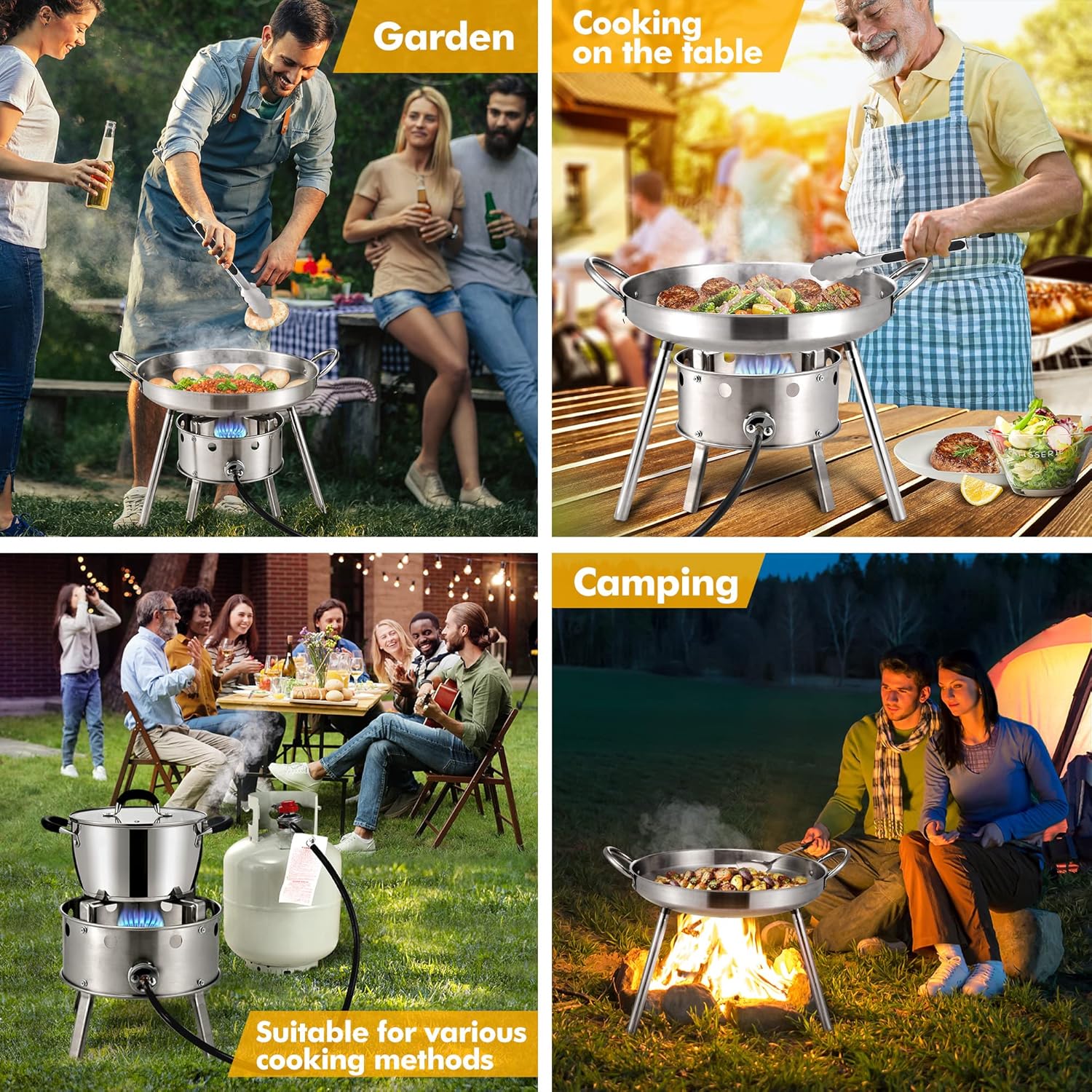 AOSION Heavy Duty 21" Stainless Steel Single Burner Propane Stove with Comal Set,37,000 BTU High-Pressure Outdoor Propane Burner Cooker,Discada Disc Cooker,Great for backyard and outdoor cooking