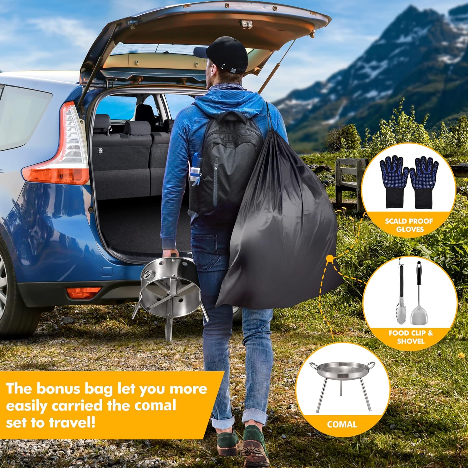- MULITIPLE SCENARIOS-The comal set not only can it be used in various outdoor scenes (courtyards, camping, parties), but also the three legs of the stove can support various sizes of pots or kettles, and can also boil noodles or water for multi-function use.